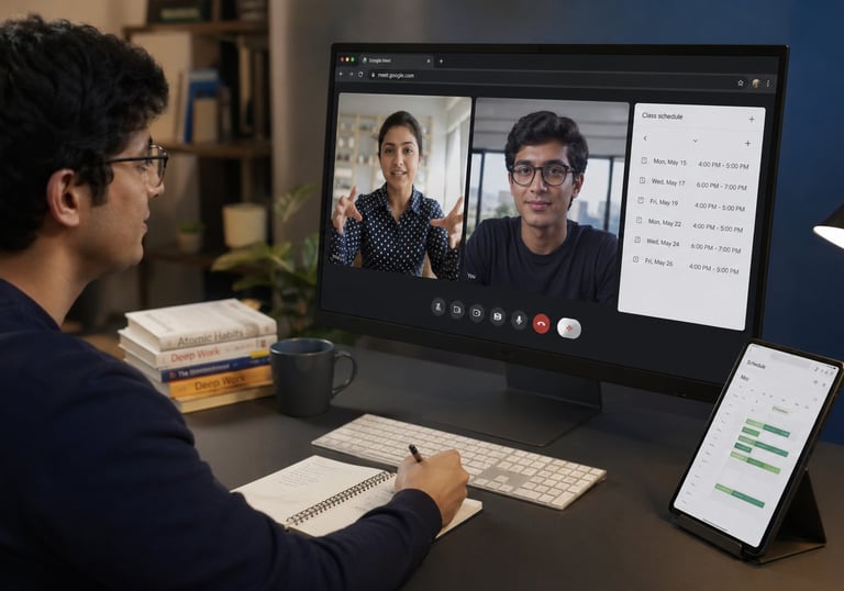 Clases online por Google Meet, con horarios coordinados según disponibilidad.